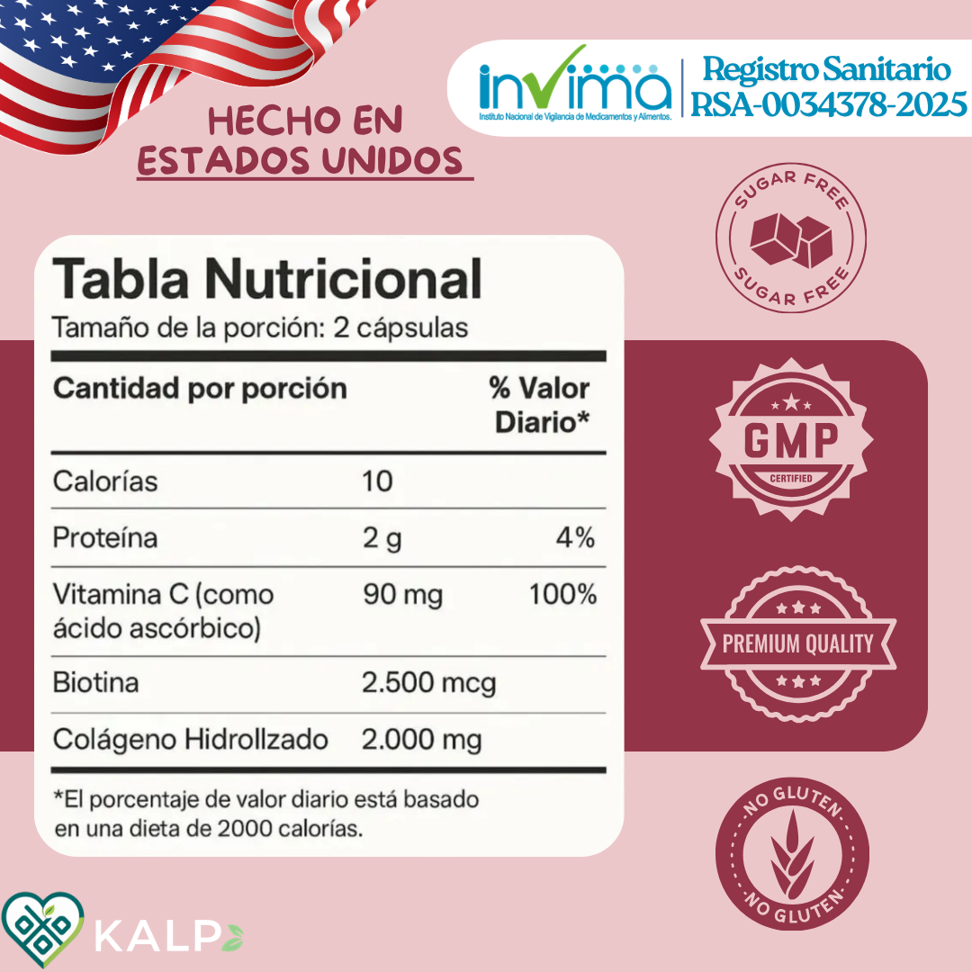 - Máxima Absorción: Colágeno hidrolizado de alta pureza.