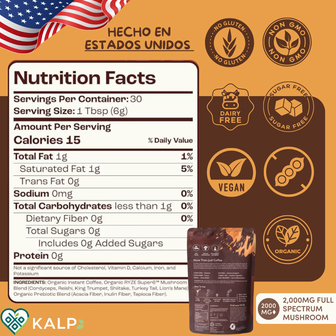Transforma tu ritual mañanero en una superpotencia de bienestar. RYZE no es solo café; es una mezcla funcional de 6 hongos adaptógenos diseñada para darte energía limpia, enfoque total y una digestión feliz.